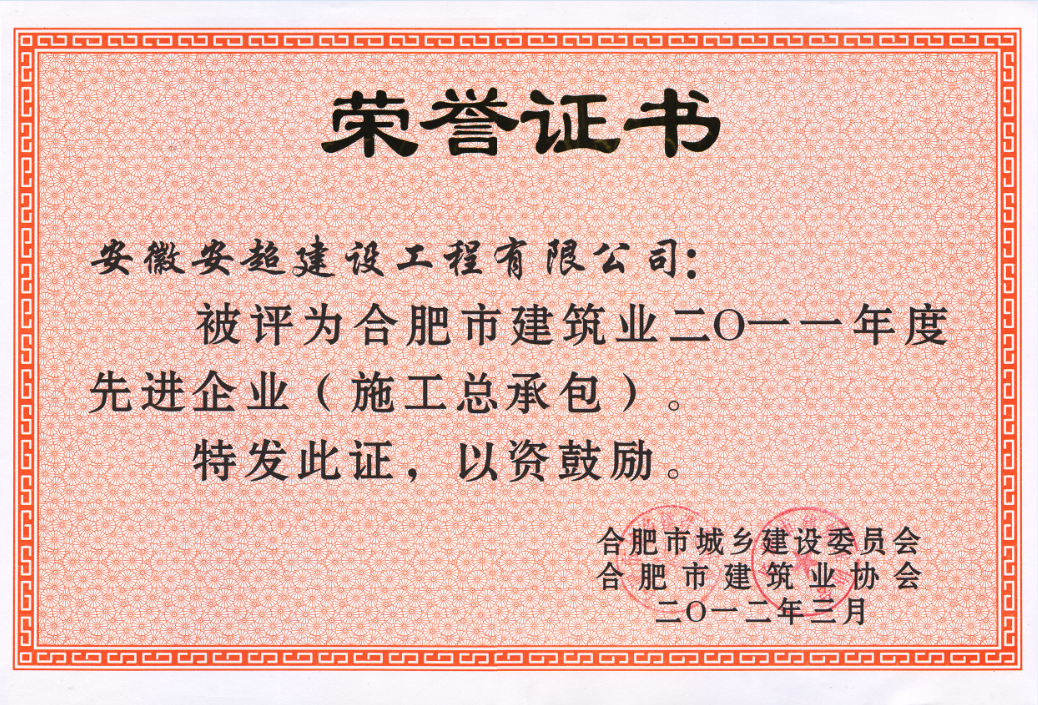 2011年市級優(yōu)秀建筑業(yè)企業(yè)