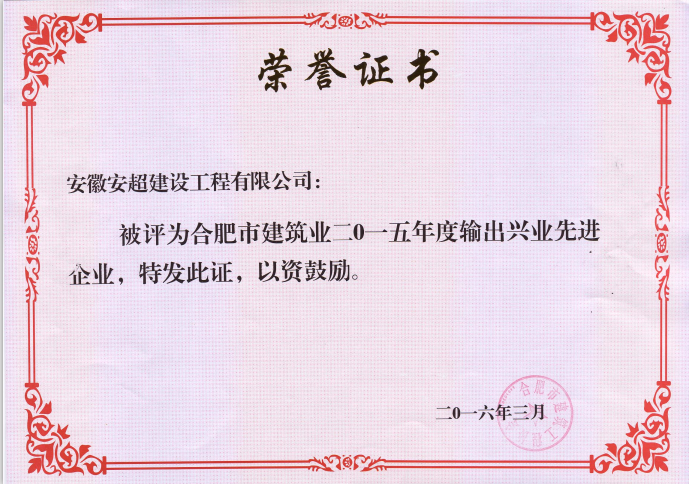 2015年度市建筑業(yè)輸出興業(yè)先進(jìn)企業(yè)