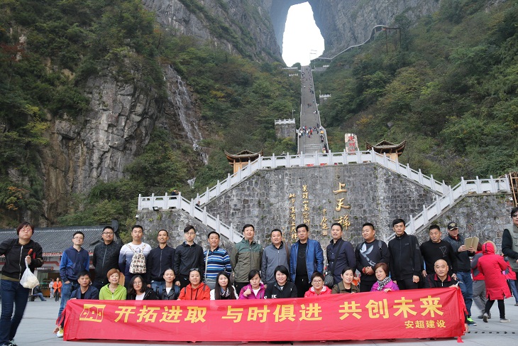 - 2017年10月27日至10月31日,安超建設(shè)公司部分員工在公司總經(jīng)理的帶領(lǐng)下,前往荊州、張家界、鳳凰進(jìn)行了為期五日游活動(dòng),尤其是人間仙境煙雨張家界,擁有著泰山之雄,華山之險(xiǎn),黃山之變化,桂林之秀麗的迷人景色,給大家留下了終生難忘的深刻印象。這次張家界之旅,是公司員工一個(gè)開心、順利、完美的旅程,將...